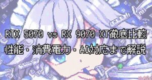 RTX 5070 vs RX 9070 XT徹底比較|性能・消費電力・AI対応まで全部解説 RTX 5070とRX 9070 XTを徹底比較!アーキテクチャ・消費電力・メモリ構成・AI性能・ゲーム性能の違いを解説し、用途別におすすめのGPUを紹介します。