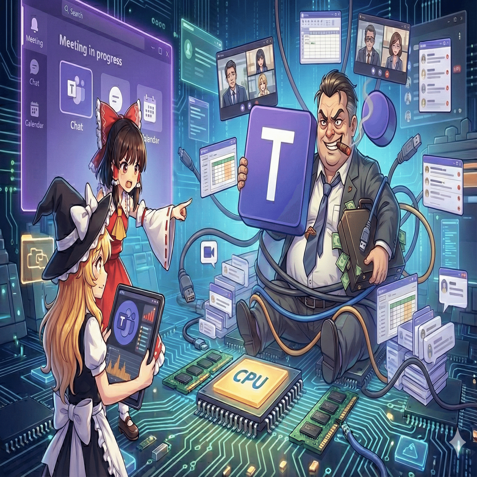 Teamsも、待機しているだけなら軽そうに見えるんですが、裏で残りやすいのが厄介です。しかも、会議や画面共有が入ると負荷が上がりやすい。
