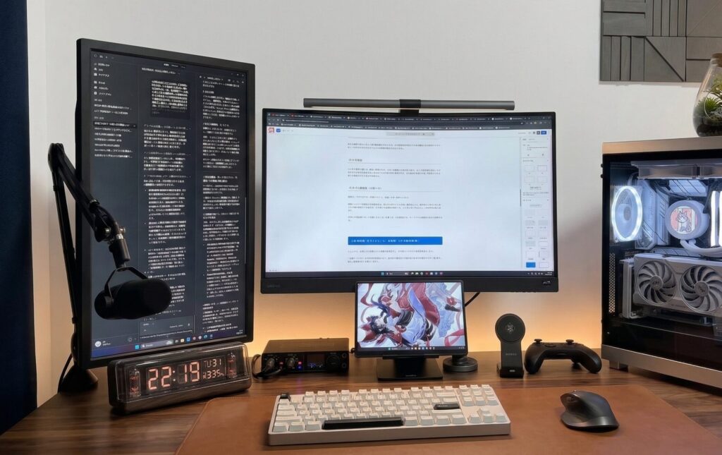 この記事では、ユーザータイプ別のおすすめ構成・デュアルモニターの配置パターン・予算帯ごとの具体的な製品例をまとめました。読み終わるころには「自分はこれだな」と決まっているはずです。